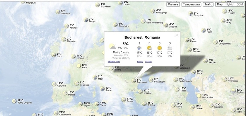 Puteti vedea starea vremii, temperatura, si trafficul orinde pe glob.